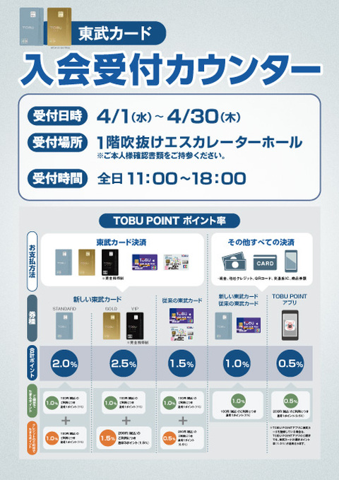 東武カード入会受付カウンター「4/1~4/30」