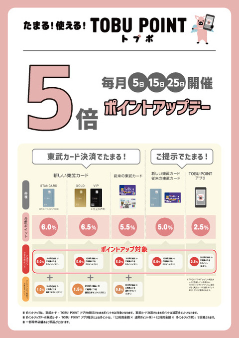 毎月5日・15日・25日開催!TOBU POINT5倍ポイントアップデー!