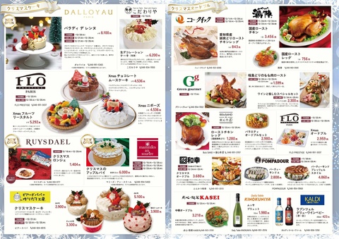 草加ヴァリエでは、クリスマスケーキやチキン・オードブル、クリスマスプレゼントにピッタリな品物も豊富に取り揃えております!