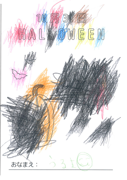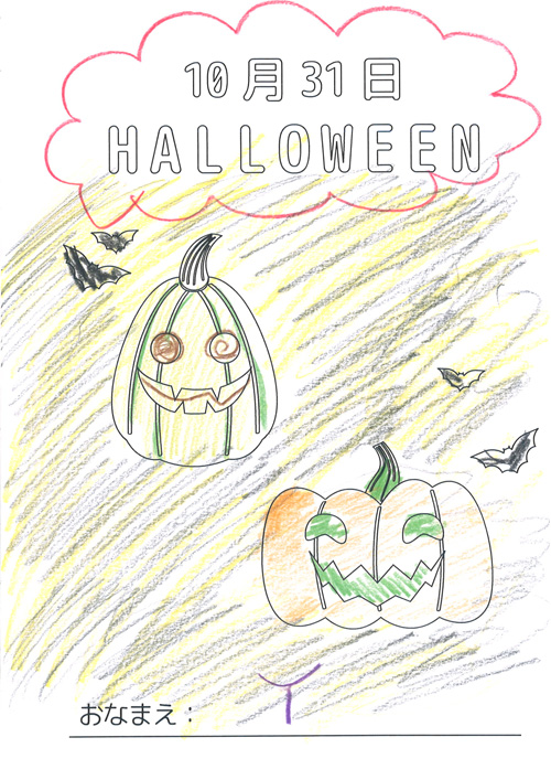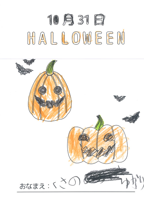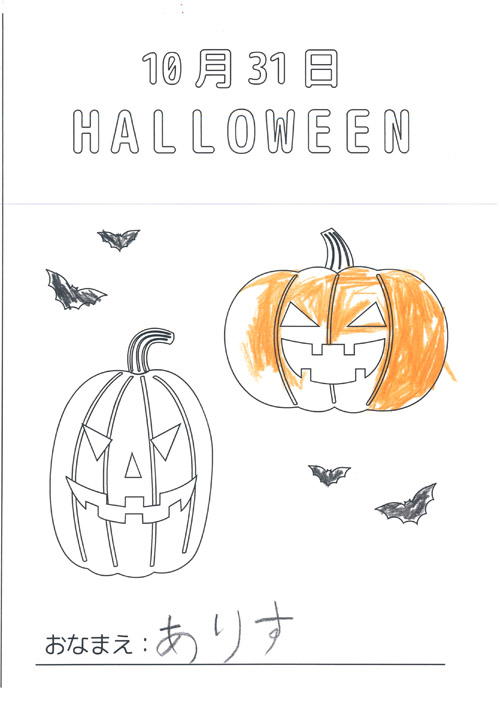 草加ヴァリエでは皆様からご記入いただいたかぼちゃの塗り絵を展示中!